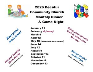 April 12th at 6:00 pm : Dinner and Games at Church.